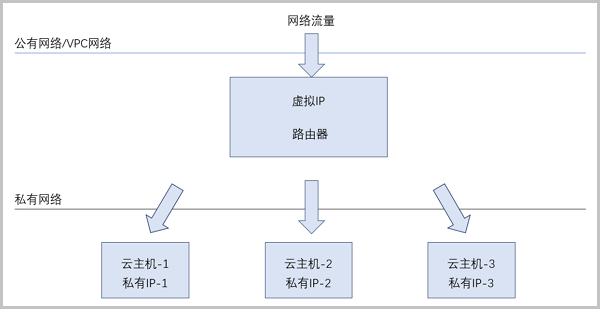 支持虚拟IP提供性能共享型负载均衡服务。性能共享型负载均衡通过VPC路由器提供负载均衡服务,访问流量经由VPC路由器分发给后端服务器。当VPC路由器上承载多业务运行,负载均衡服务需与其它业务共享VPC路由器性能。
