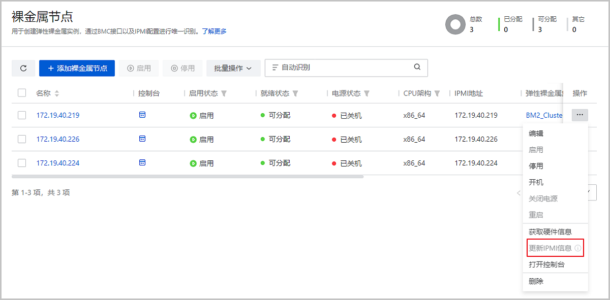 图 1. 更改裸金属节点IPMI信息