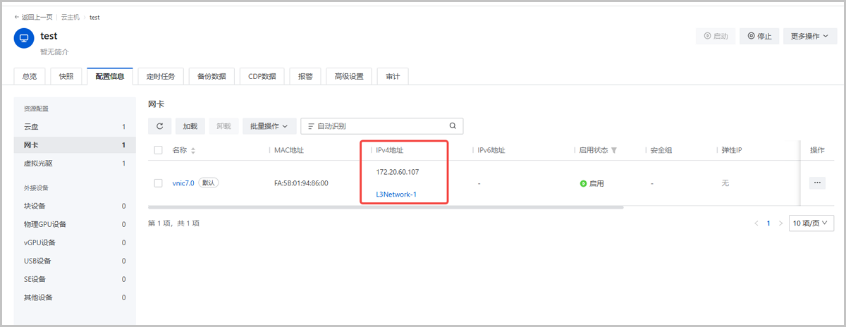 ZStack Cloud 5.2.0开始,支持实时读取和展示云主机内部IP,如云平台已有该网卡IP信息,且该信息与内部IP不一致,内部IP可覆盖云平台记录,使云平台记录始终与网卡真实IP保持一致。
