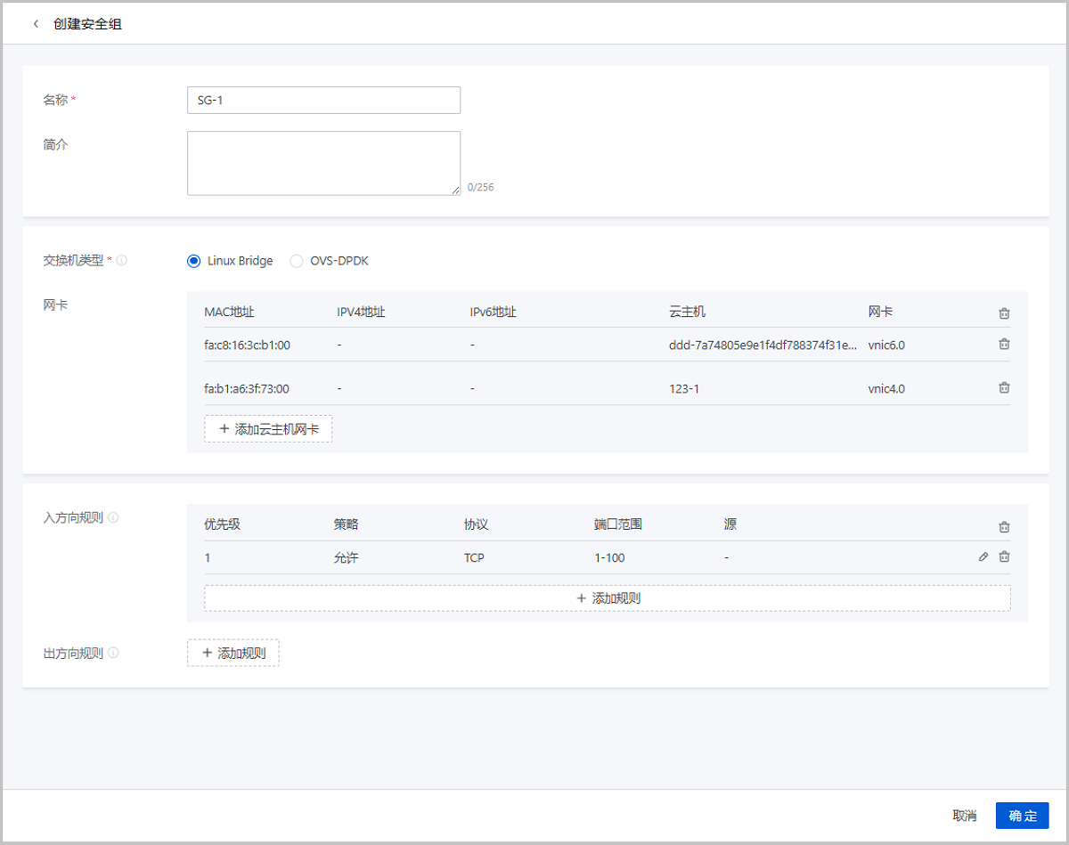 | 规则匹配 | 源IP/安全组、目的IP/安全组、源端口、目的端口、协议 | 源IP、源端口、目的IP、目的端口、协议、报文状态 |